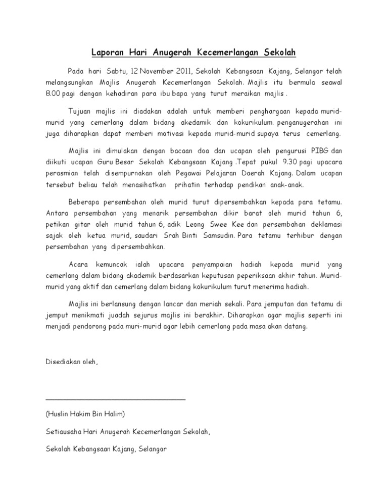 21 contoh karangan laporan pt3. 12 Markah Merit Tertinggi. 11 Kehadiran murid 100 peratus.