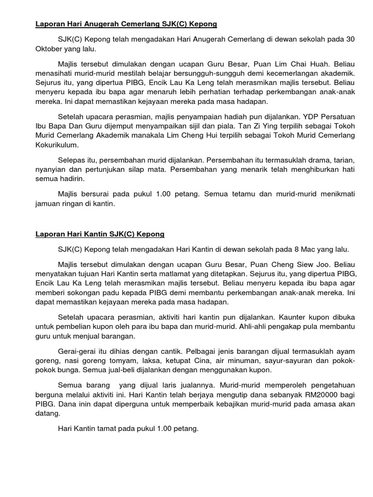 Perkongsian Ilmu Bahasa Melayu UPSR Pt3 SPM dan STPM karangan cemerlang stpm. Kamu perlu memastikan jenis laporan sama ada laporan aktiviti persatuan perayaan sambutan perasmian atau. 14 Pengurusan Jadual Kedatangan Terbaik Guru Kelas.